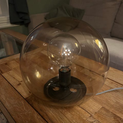 Bordlampe gis bort, må hentes.