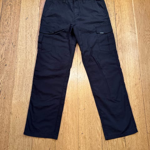 Buksa er grønn og laget i polyester. Den har flere lommer med klaff og glidelås på lårene, samt baklommer. Midjen har beltehemper og lukkes med knapp og glidelås. Nederst på beina er det glidelås og forsterkninger for bedre passform over sko eller støvler.