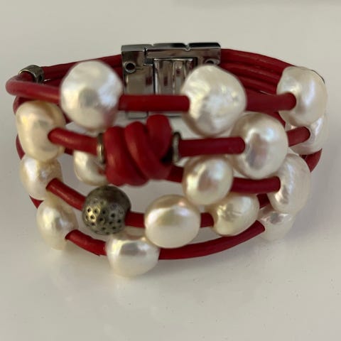 Tøft lærarmbånd med blanke perler. God kvalitet.