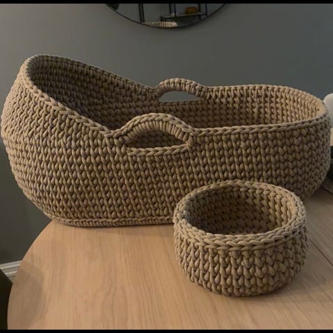 Fin vugge brukt til 1 baby uten feil eller mangler, som ny 2-3 laken medfølger. Naturlig moseskurv med premium madrass og håndtak. Kurven er vevet for hånd, som gjør den til et helt unikt produkt. Den vil gi et rolig og trygt sted å hvile for din lille baby.