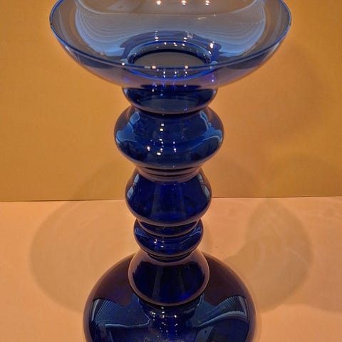 Ingridglaser kerzenleuchter den kan også brukes til kubbelys eller lignende, et flott interiør objekt i strøken stand. Den er 25,5 cm høy og den har en diameter på 13 cm . Den selges som den er og som den er vist på bildene . Den kan hentes hjemme hos meg eller så kan den eventuelt sendes . 💐