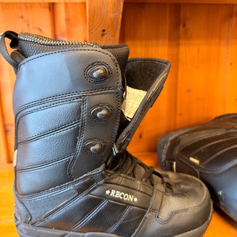 Recon snowboardstøvler i svart. Støvlene har tradisjonell snøring foran og kraftig gummisåle med mønster for godt grep. Polstret innside og høy skaftkonstruksjon gir støtte rundt ankel og legg. Egnet til bruk med standard snowboardbindinger. Str. 33.