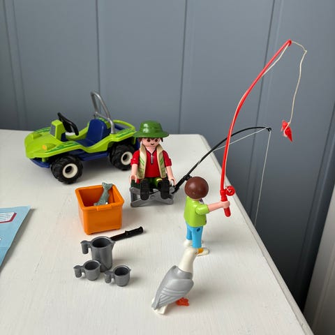 I tillegg er det med diverse tilbehør som trafikkjegler, varselskilt, verktøy og smådeler til veiarbeid. Lekesettet egner seg til rollelek rundt bygg- og anleggsarbeid og kan kombineres med andre Playmobil-deler med samme skala.