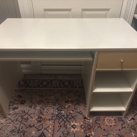 Malt skrivepult og hylle gies bort mot henting