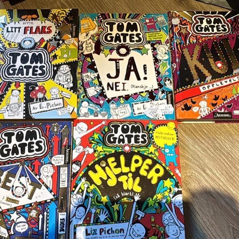 Tom Gates-bøker på norsk, selges samlet