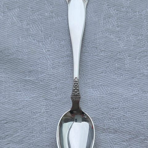 Barneskje/is-skje i 830S sølv i serien "Anitra" fra Th. Martinsen i Tønsberg, sannsynligvis laget mellom 1930 og 1950, basert på norsk rosemaling i rokokkostil fra 1700-tallet. Dette mønsteret er gått ut av produksjon. Merket "Jenny Olaug".