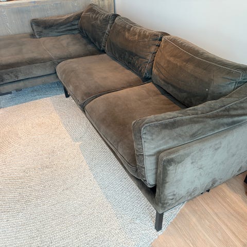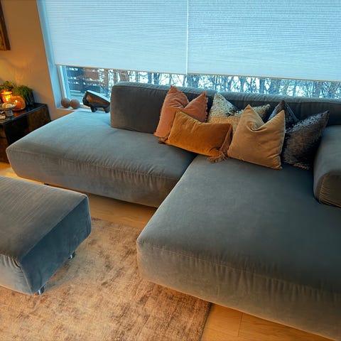 pent brukt hjørnesofa. Velur grå farge, tre år gammel.