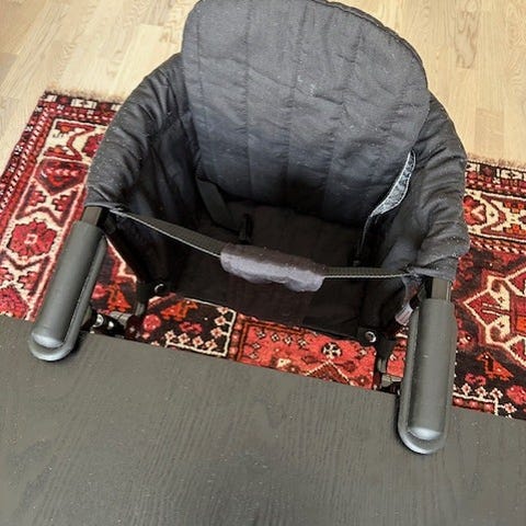 Vi har brukt den i båt og på reise. Perfekt så man slipper å tenke på om overnattingssteder har barnestol!