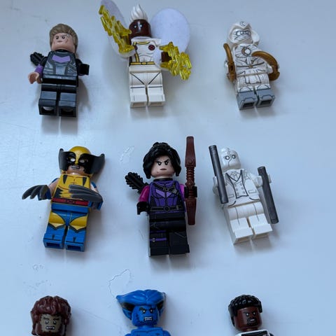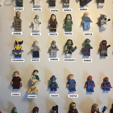 Selges en rekke ulike Marvel minifigurer.