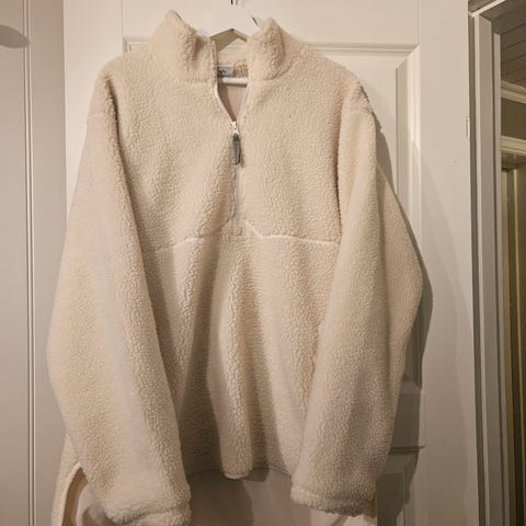 Myk og varm half zip fleece genser i en offwhite farge.