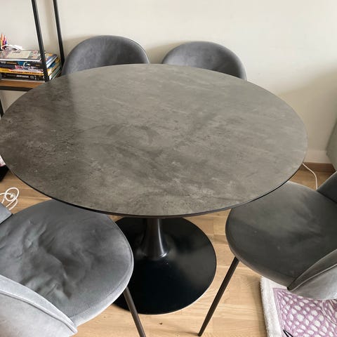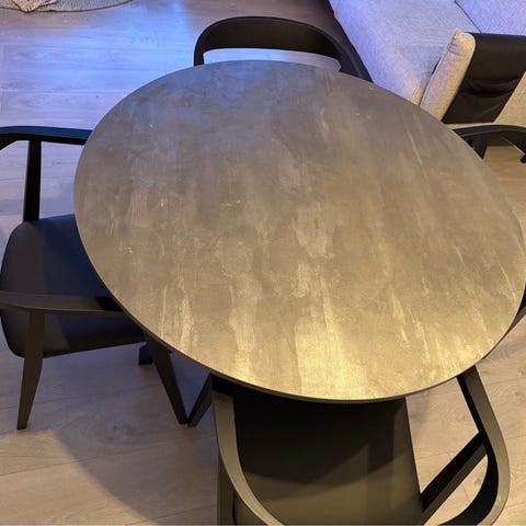 Spisebord med 6 svarte stoler selges grunnet flytting.