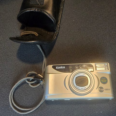 Konica Big Mini F kamera kjøpt i Japan. Perfekt stand i forhold til alder. Fungerer utmerket. Original hylster og ferskt batteri følger med.