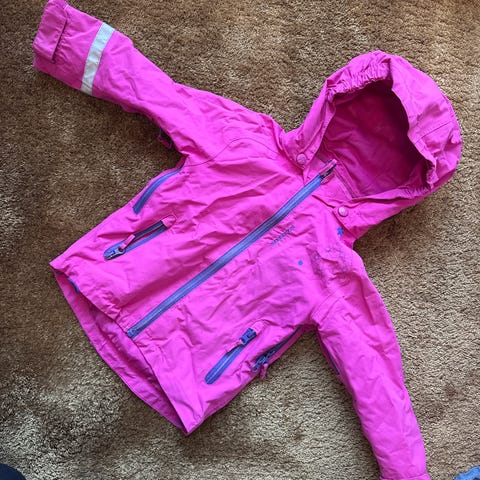 Stormberg barnejakke i størrelse 98 for. Jakken er laget i polyester og har vattert, quiltet design. Fargen er hovedsakelig rosa med mørke kontrastfelt på ermer og skuldre. Modellen har høy krage, glidelås i front og refleksdetalj på ermet. Egnet som ytterjakke til hverdagsbruk og uteaktiviteter for barn i aktuell størrelse.