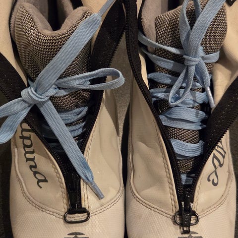 Alpina Touring langrennsstøvler i svart og grå farge for barn, str 33. Støvlene har snøring med hurtiglås og glidelås-lukking i front for ekstra beskyttelse mot snø. Sålen er tilpasset klassisk langrenn med turbruk.