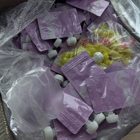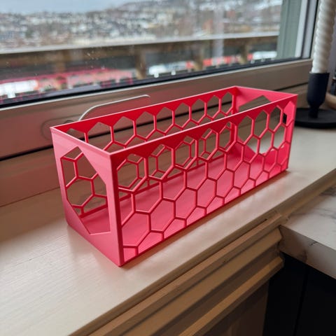 3Dprintet plasseffektiv oppbevaring av klemmeposer og lignende i kjøleskap eller skuffer. Passer fint til oppevaring av Skyr mini, grød og lignende klemmeposer, opp til 7-8stk.