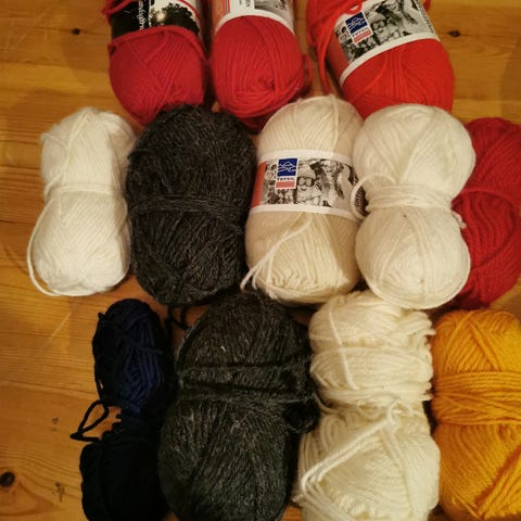 Såvidt påbegynnt vrangbord til nancygenser. Nok garn til str 10år. Strikkes i silja garn.