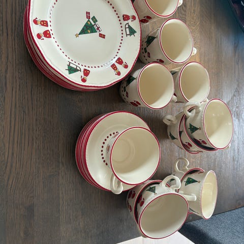 Alle er vakker tydelig julene for krus, asjett, grøtboller, og stor kanne.
