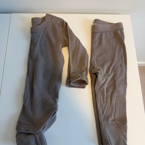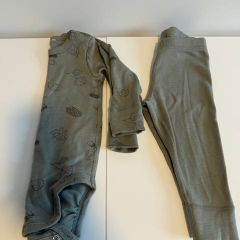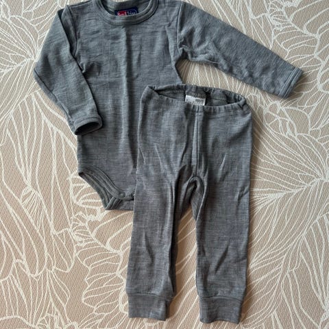 Body og longs i 100% merinoull. Str 68.Lite brukt. Vasket med milo parfymefri. Dyre-og røykefritt hjem.