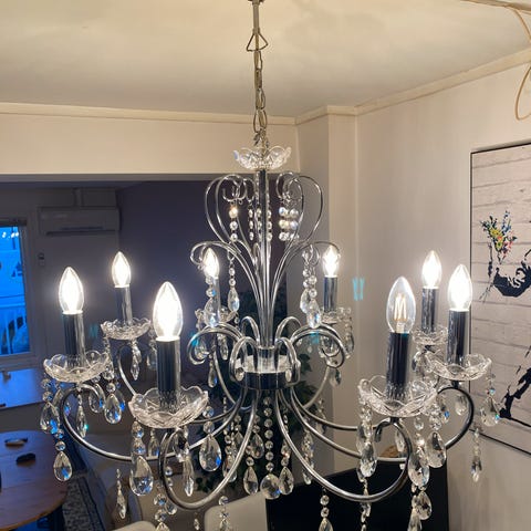 Taklampe med krystaller. Ekstra krystaller følger