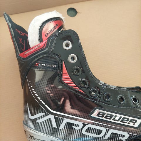Bauer Vapor X4 ishockeyskøyter i størrelse 43. Slipp løs eksplosiv fart med Bauer Vapor X4 skøytene, konstruert for å være de letteste i ytelseskategorien. Den fjærlette Curv Composite-støvelen gir støtte på pro-nivå, slik at du kan skøyte raskere med mindre tretthet. Få et forsprang med LS Pulse SS stålet for overlegen stabilitet og akselerasjon, låst inn i den NHL-godkjente LS Edge holderen for lynraske bladbytter. En termoformbar overdel, Pro Stock pløse og en asymmetrisk tåhette kombineres for en perfekt, responsiv passform. Dominer hvert bytte fra det øyeblikket du går på isen.