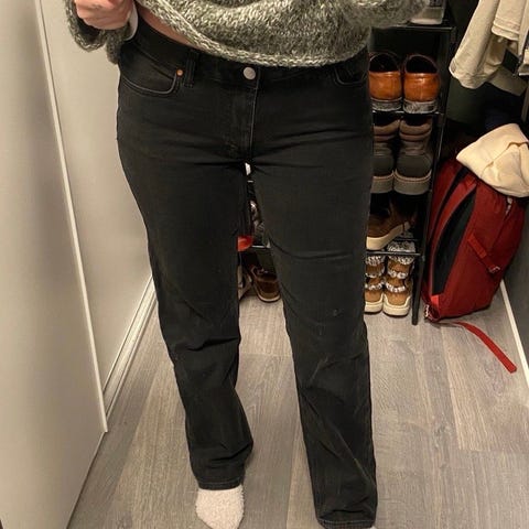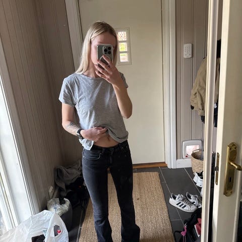Selger denne fine olabuksa med sleng, da den ikke blir brukt lenger. Buksa er low waist.