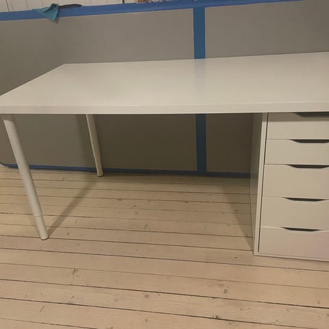 Brukt Skrivebord. Brukt men i god stand. 1 liten skuff og uttrekkbar tastaturhylle. Mål: Bredde 110 cm, dybde 60 cm, høyde 172 cm. Selges for 100,-