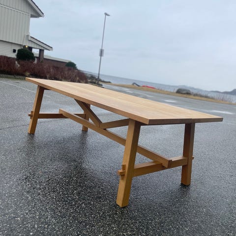 IKEA MÖCKELBY spisebord i eik. Rektangulært spisebord med solid bordplate og kraftige ben i tre. Bordet har en naturlig eikefinish som gir et varmt uttrykk og passer inn i de fleste kjøkken og spisestuer. Egnet som samlingspunkt for måltider, arbeid eller andre aktiviteter rundt bordet.