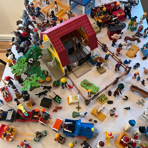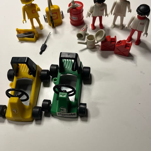 Playmobil figurer og tilbehør blandet lot. Pakken inneholder flere Playmobil-figurer i ulike farger og antrekk, samt diverse tilbehør som blant annet gummibåt, kjøretøy, stige, kikkertstativ og smådeler. Egner seg som tillegg til eksisterende Playmobil-samling eller som reservedeler. Antall deler og komplette sett er ikke spesifisert, se bilder for oversikt over innholdet.