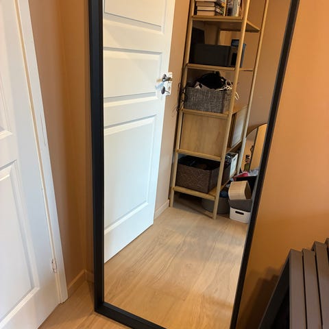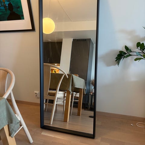 IKEA speil i helfigur med svart, rett ramme. Må hentes. Har stått i bod en stund men ser fint ut.