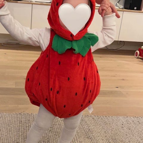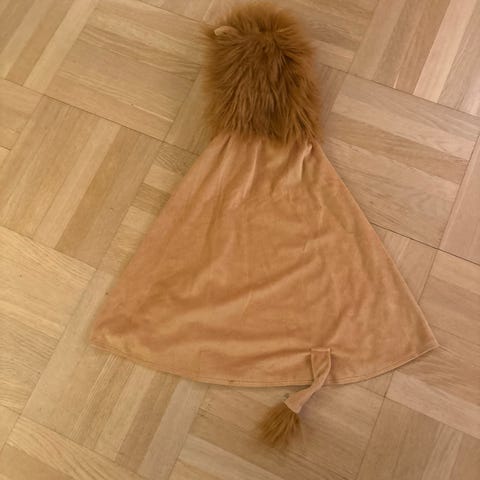 Genialt kostyme til karneval for de minste. Lett å ta av og på og blir ikke like varm som mange andre kostymer. Som kappe passer den i flere år. Borrelås er løsnet foran brystet. Derav «godt brukt», selve kappen fremstår som pent brukt.