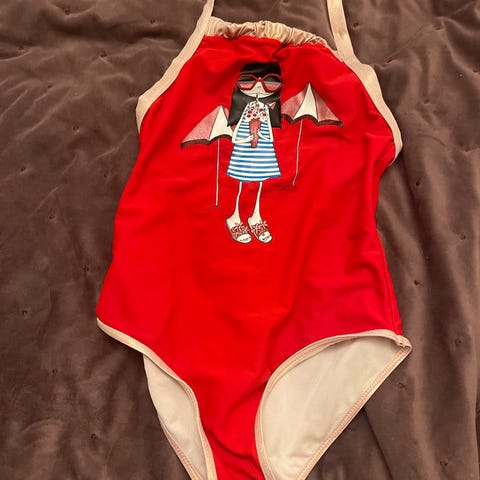 Badedrakten str 5 år, men liten i str så passer mer 4 år.