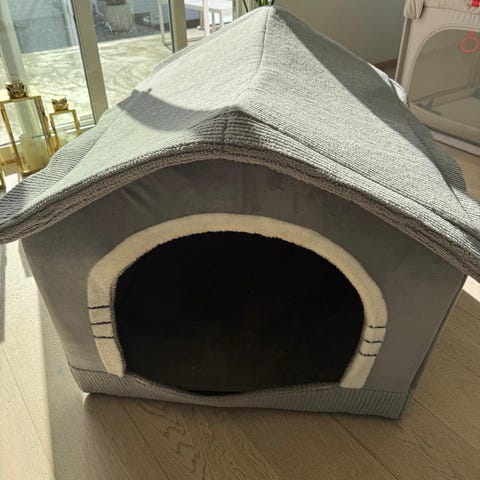 Selger katteseng i størrelse 40x30x30 cm. Kan passe for mindre hunder også. Helt ubrukt da katten ikke likte den.