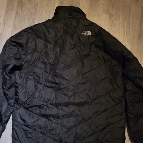 The North Face vinterjakke for herre i størrelse L. Jakken er blå og fylt med dun, noe som gir god isolasjon i kaldt vær. Modellen har hette med pelskant, hel glidelås foran og lengre passform som dekker godt. Egnet som ytterjakke til vinterbruk og andre kalde forhold.