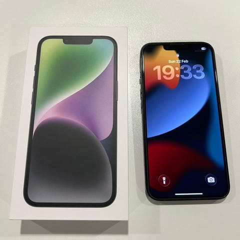 Selger en pent brukt iPhone 14, som er blitt brukt med ekstra skjerm og deksel siden den var ny.