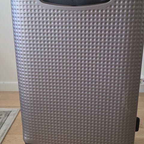Liten Epic koffert i hard plast i grå farge. Kofferten har fire hjul og teleskophåndtak for enkel manøvrering. Den er utstyrt med integrert TSA-kodelås på siden. Innvendig har kofferten stroppesystem for å holde innholdet på plass, samt skillevegg med glidelåslomme for organisering av bagasje. Egner seg som reisebagasje for ulike typer turer.