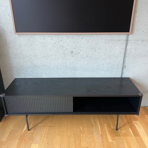 Tv benk fra 2022, pent brukt men noen bruksmerker. Tv på bildet er 65 tommer. Mål: 50cm høy, 40cm dybde og 150cm brei.