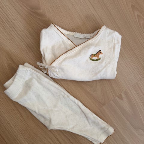 H&M 2x babysett med bukse og langermet genser i størrelse 62. Farge beige, unisex modell.