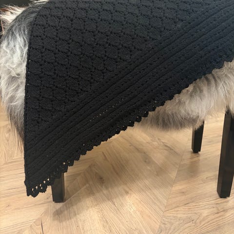 Bunadsjal i ull 150x150 cm selges for 3000 kr. Brukt en gang og er som ny. Ingen bruksmerker.