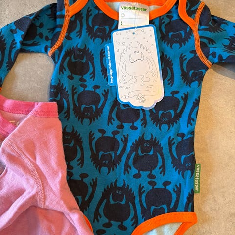Body fra vossatassar i str70. 45% ull og 45% bomull. Fin til barn med sensitiv hud/eksem.