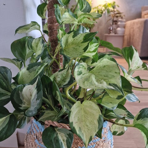 Kvitter meg med flere planter og selger derfor min Epipremnum Marble Queen også kalt gullranke. Klippet hele av en større plante og plasserte i egen potte. Har grodd mange nye røtter, selv om de fortsatt er litt små for størrelsen av planten. Derav ser den litt tørst ut. Har stått i planteskap og ser ut til å like seg der.