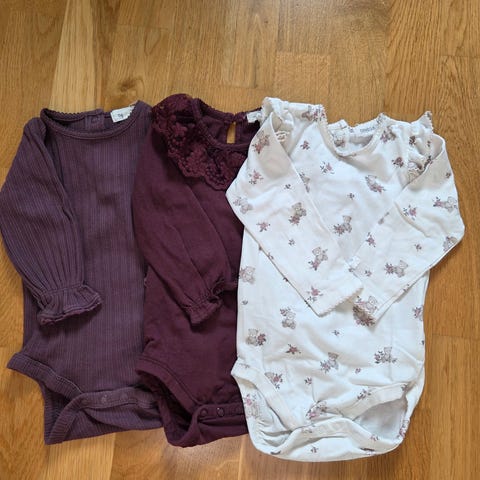 2 ull bodyer og en ullbukse fra hust and claire i str68. Bodyer i 50% ull og 45% viskose fra bambus.
