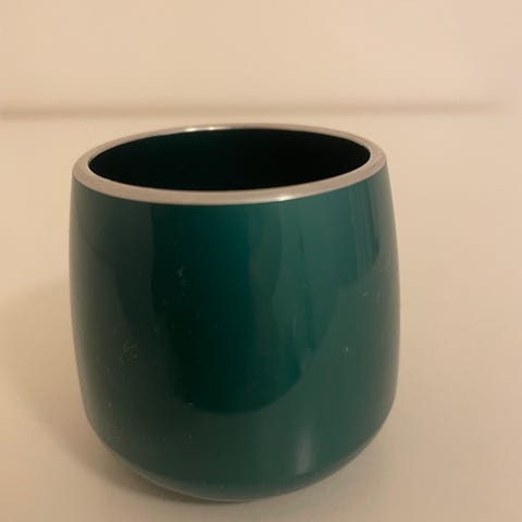 Selger 4 stykk emalox bordskånerere samlet for kr 100,- De er Designet av Bjørn Engø for Emalox Norge og de har en diameter på 7 cm .