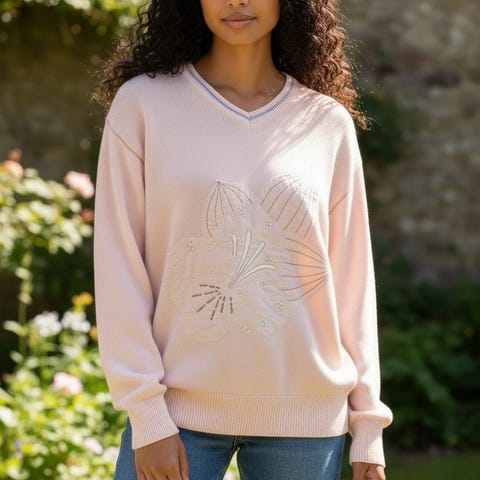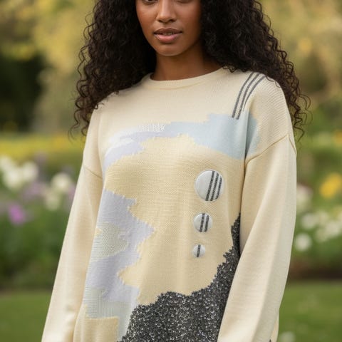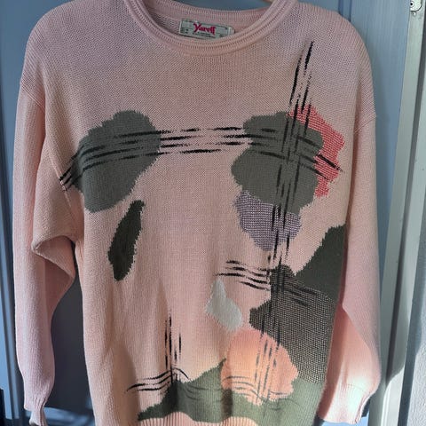 Flott vintage genser i bomull fra Yarell str S/M med skulderputer. Pent og lite brukt. Kostet dengang 4.249,- selges kr 500,-(58)