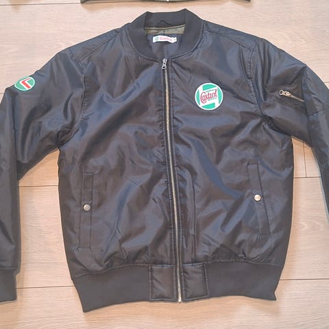 Helt nye og ubrukte Castrol bomberjakker; 1 i kakigrønn og 1 i svart. Størrelsen på begge er M. Normale/rause i størrelsen. Unisex-modell. Laget av 100% polyester. Den grønne jakka kommer i original plastpose. Kun tatt ut for å ta bilde.