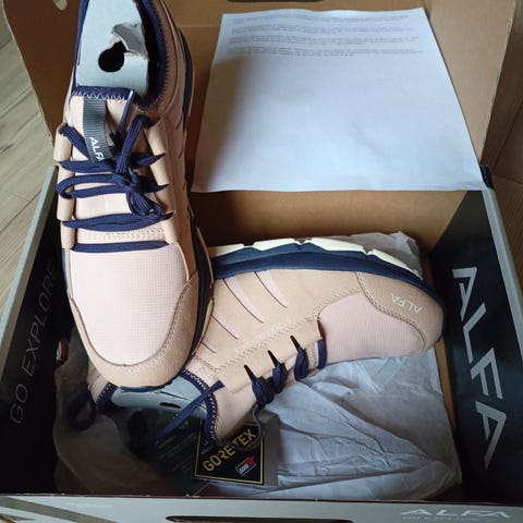 Fikk disse i gave, men har alt for mange sko. Women"s Stokka Advance Gore-Tex fra ALFA er en tursko for damer. Overdelen har en fit-sleeve-passform, det vil si elastisk og trekkes på som en sokk, deretter justeres passformen ytterligere ved hjelp av snøring. ALFAs bredere EVA-såle gir god plass til tærne, samt demping og støtte for foten under vandring.