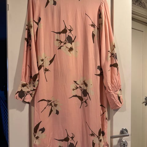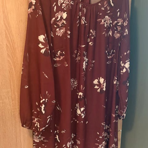 Begge i størrelse XL for dame. Kjolen er flerfarget med blomstrete mønster og er laget i polyester. Modellen har lange ermer og knapper foran. Passer til bruk ved ulike anledninger der man ønsker en mønstret og lettstelt kjole i polyesterstoff.