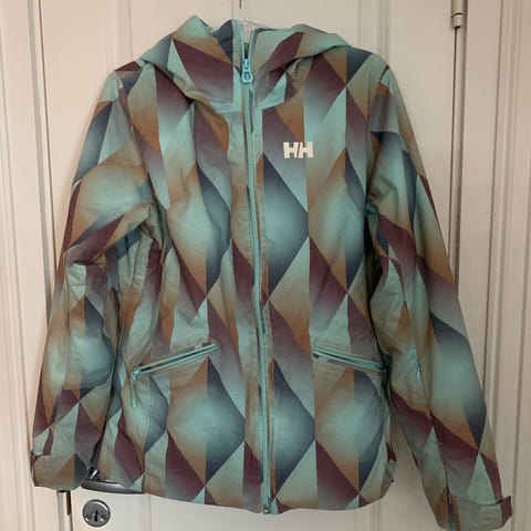 Helly Hansen skijakke str 10-12 år. Brukt fire-fem ganger. Pocket valley Alpine klubb merke på ryggen. Liten flekk på høyre arm, ubetydelig for bruk. Fin jakke, uten slitasje da den er brukt svært lite.