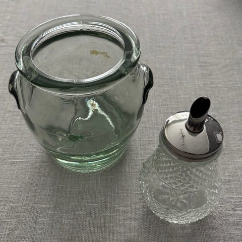Diameter 8 cm ( nederst) og høyde 11 cm.