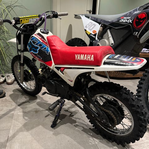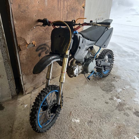 Elektrisk crossykkel som er brukt Max 2 timer kjøpte den høsten 2025 jeg har settet på ny grips nye klister merker en tlf holder en liten bag og full trhottle