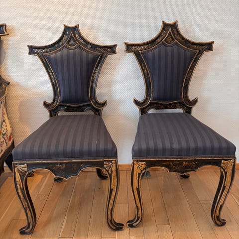 Bakgrunnen for stolene er usikkert, men trolig fra 1700-tallet fra Øst Europa eller Italia.